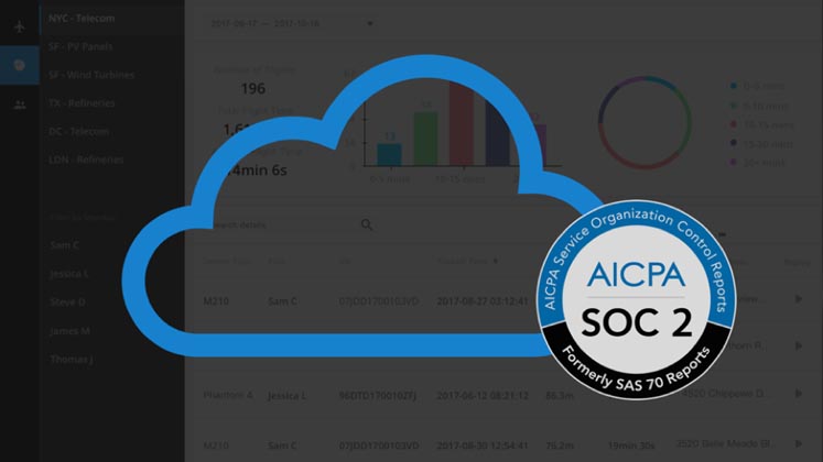 FlightHub almacena tus registros de vuelo en un servidor AWS estable situado en EEUU con estándares operativos que se ajustan a la normativa SOC2